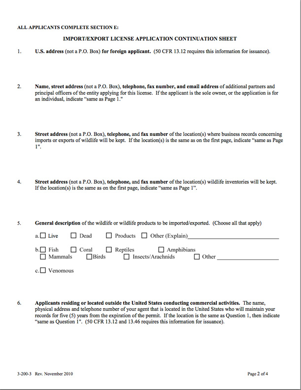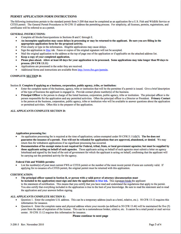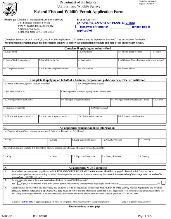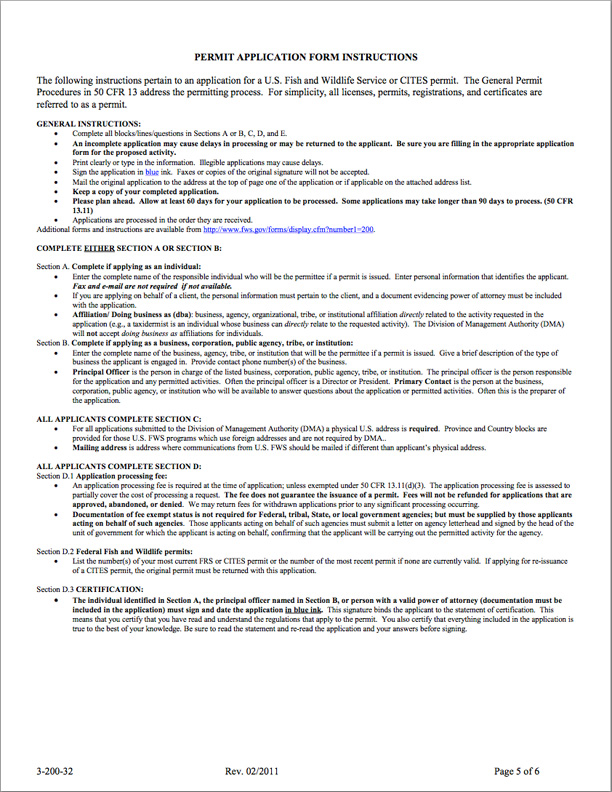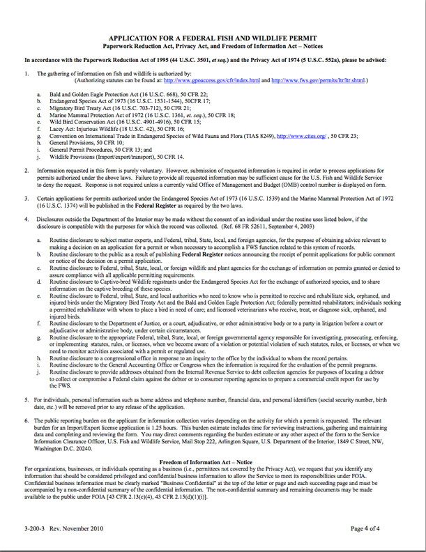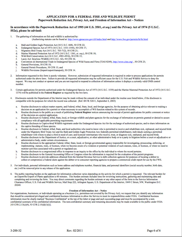 Federal Fish and Wildlife Permit Application Form: