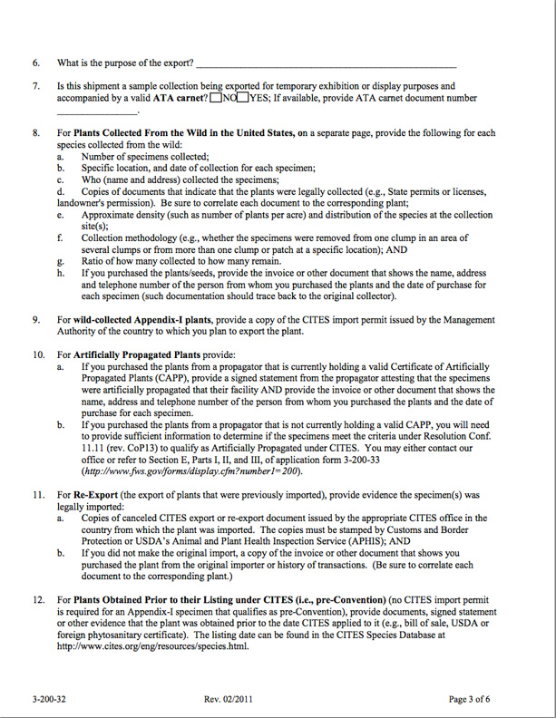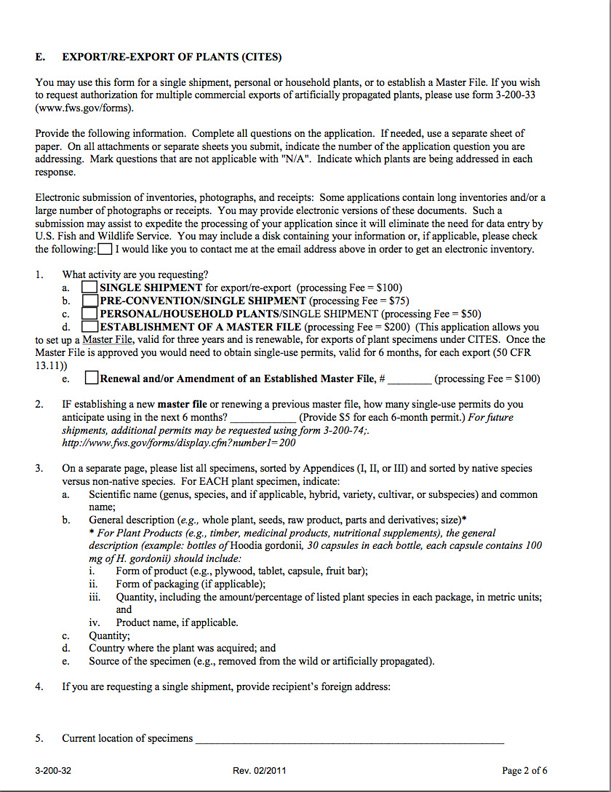 Step 2) Once your import/export license has arrived, and you have identified specific instruments to ship, you may apply for a permit for "Export or re-export of plants".