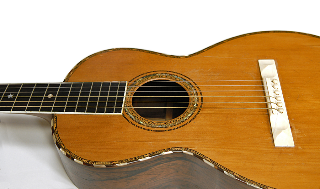 steel strings, the sound of his parlor guitars has been said to equal, and