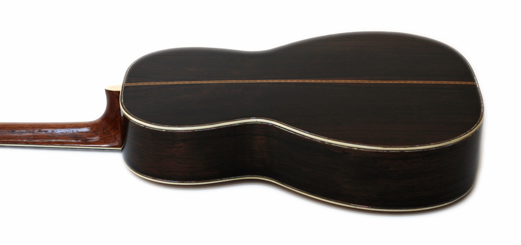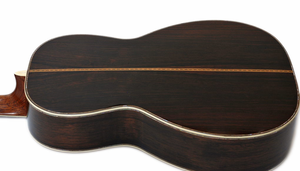 The back and sides are French Polished Brazilian Rosewood, and the top is
