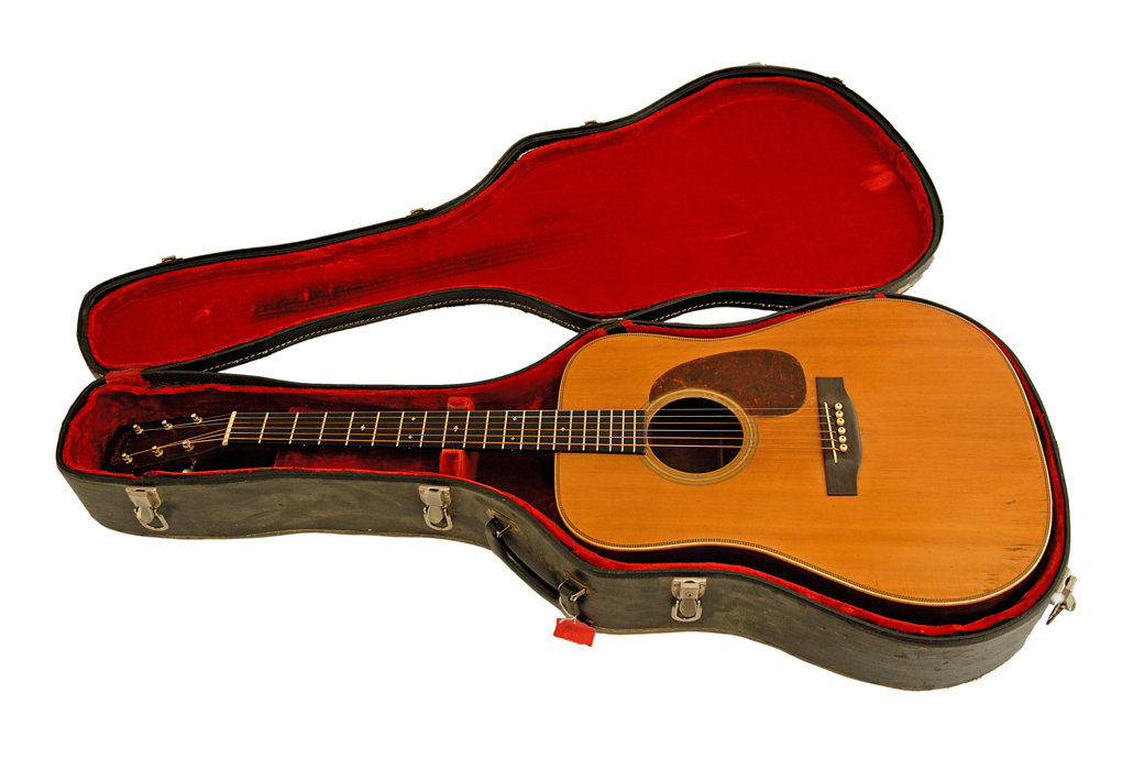 Since it's inception in the 1850's, the Style 28 Martin has been      recognized by it's herringbone purfling on the top border of the guitar      made of fine wood marquetry imported from Germany.  In 1947, as the      supply of available herringbone marquetry purchased before the war      dissipated, the manpower needed to handle old world craftsmanship became      harder to find, and tastes moved towards "post-war modern", Martin      replaced the herringbone border with the simple border of straight lines      introduced with their archtop guitars in 1931.