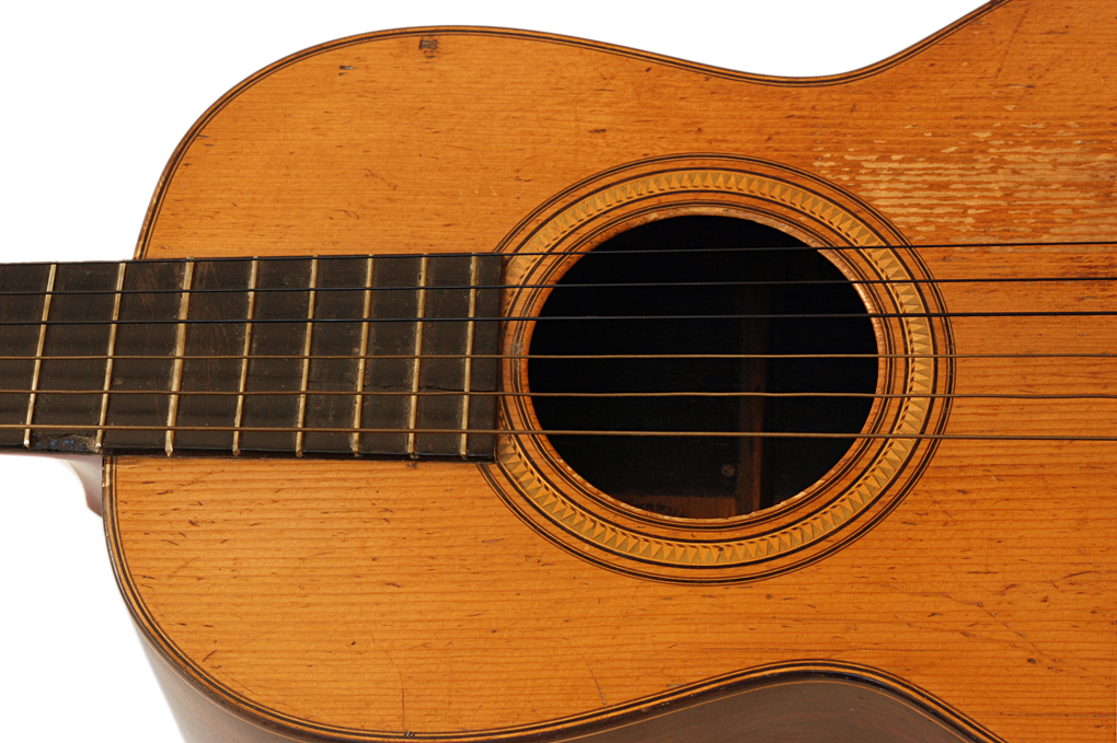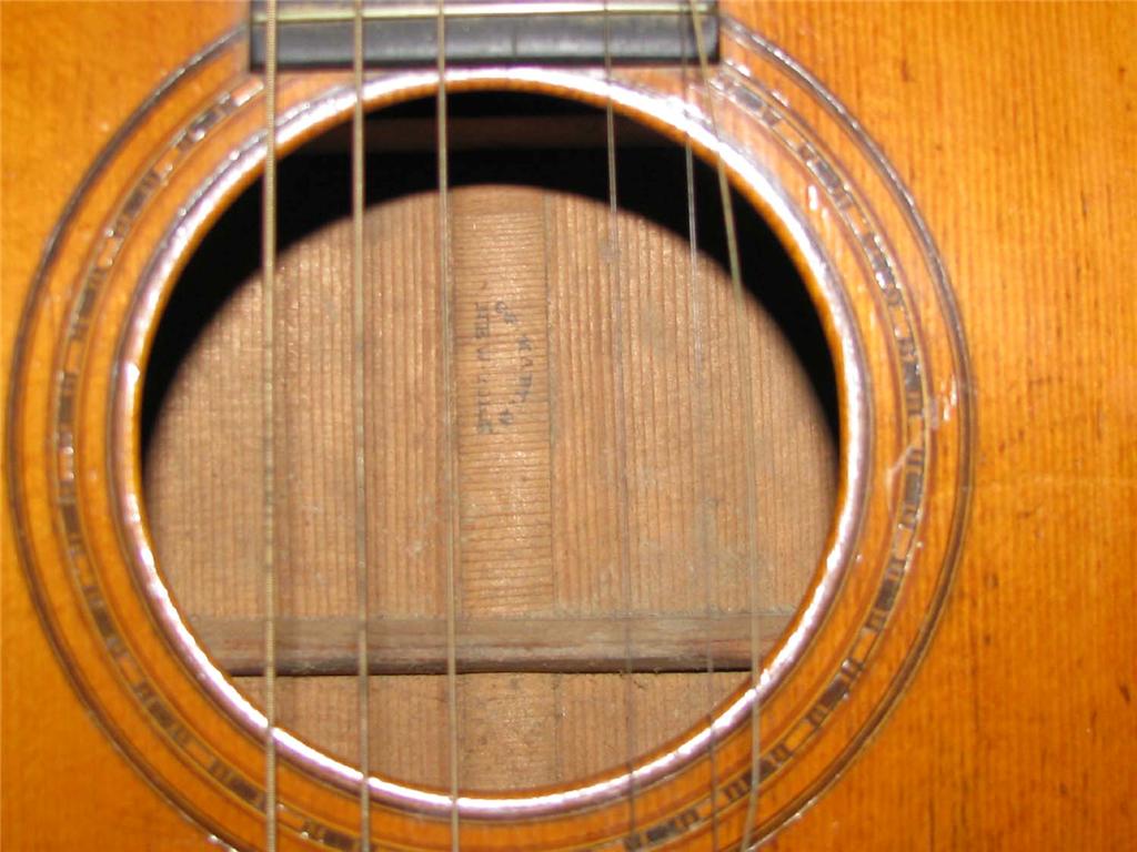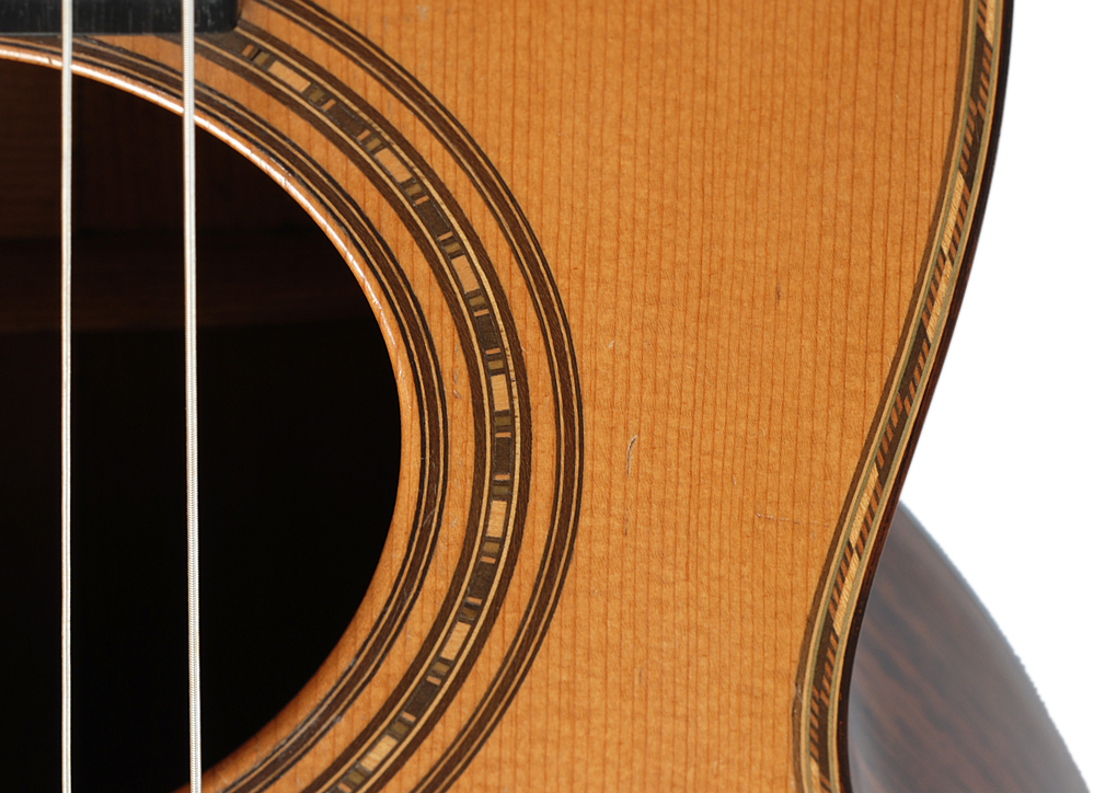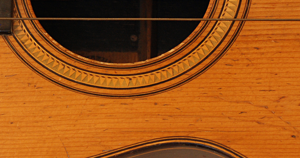 colored wood marquetry around top & soundhole, X-braced, Jerome tuners