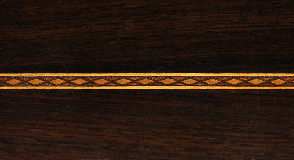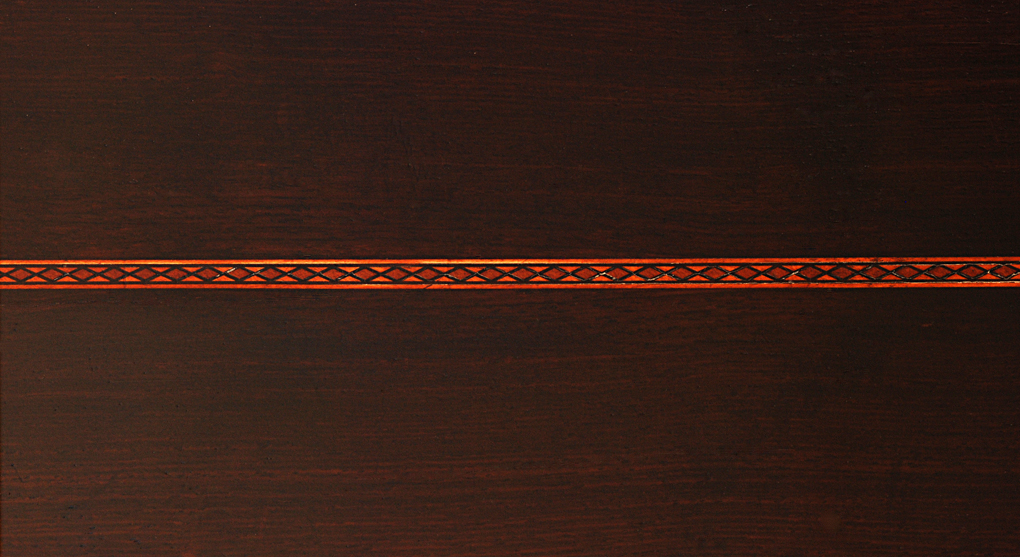 marquetry in an arrowhead design.  A unique wood inlay is used for