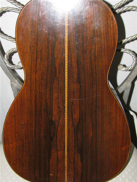 rosewood back and sides, ebony fingerboard and pyramid scooped back